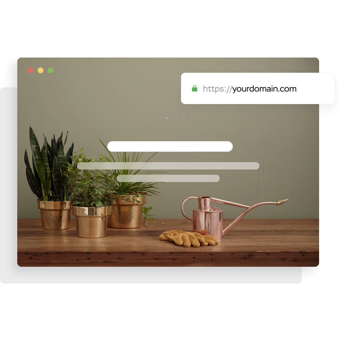 Styrk dit brand med et tilpasset domæne. Brug det du allerede har, eller registrer et nyt hos os. Alle domæner får automatisk HTTPS, helt gratis.